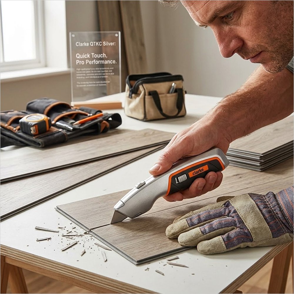 The Clarke Quick Touch Knife is a lightweight, ergonomic retractable cutter featuring a tool-free instant blade change mechanism—the perfect heavy-duty essential for flooring and DIY tasks.
