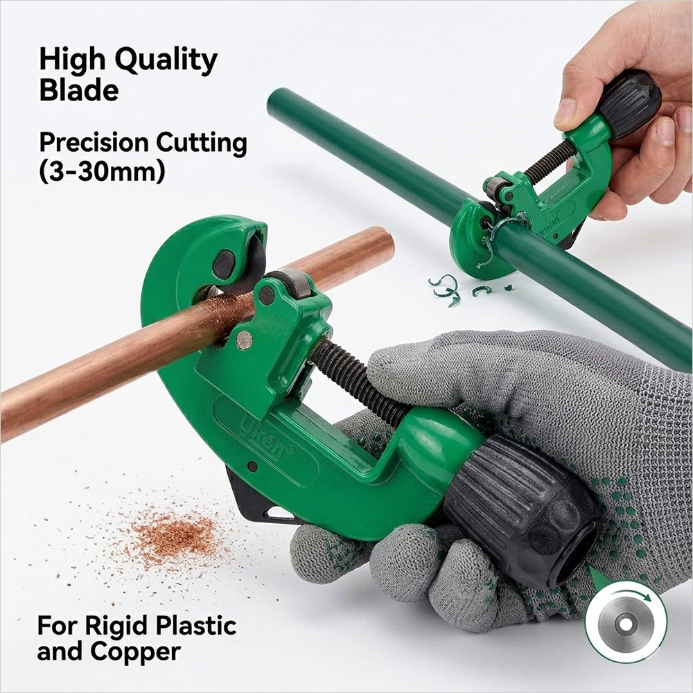 The U6101 is equipped with a high-quality, heat-treated blade designed to outlast standard cutters. Its robust green and black body is ergonomically shaped to provide maximum leverage with minimal effort. With a versatile cutting range of 3mm to 30mm, this tool easily handles everything from thin copper tubes to thicker rigid plastic and aluminum pipes.